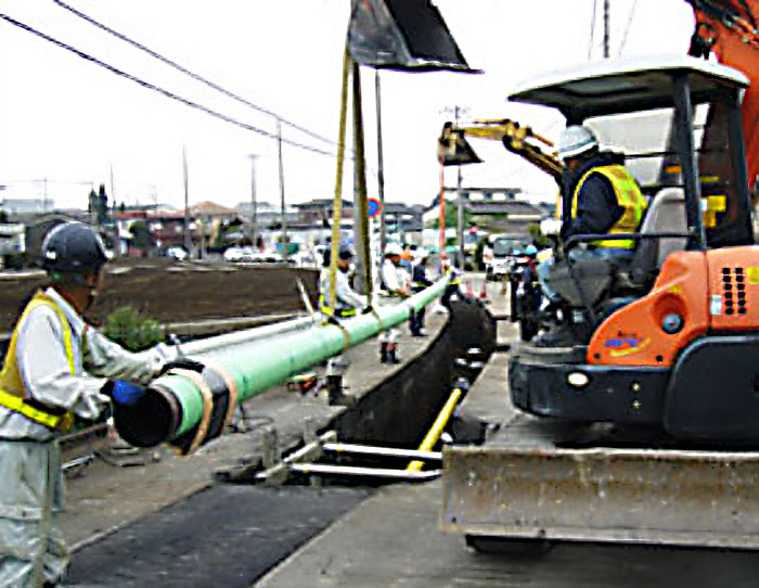 ガス導管(埋設管)の材質は、強度が高い鋼管(ポリエチレン被覆鋼管)を使用し、地震時の外力にも耐えられるようになっています。