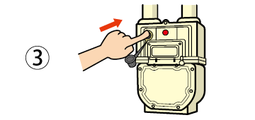 ・復帰ボタンを奥までしっかり押して、すぐ手を離す。(ボタンは元に戻り、赤ランプは再び点滅します)